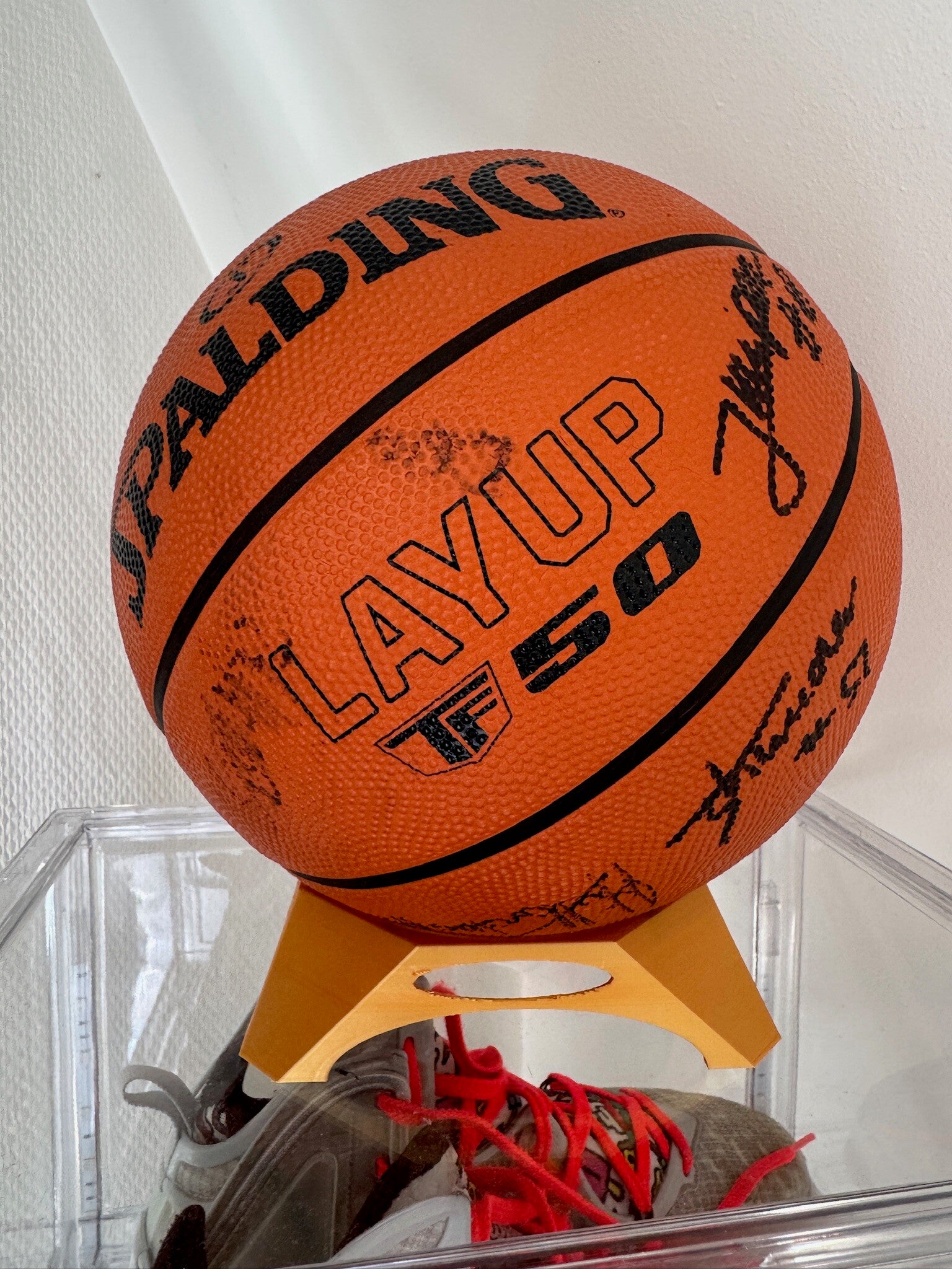 u kunt hier alle ballen op zetten behalve tenisbalen en rugby balen.